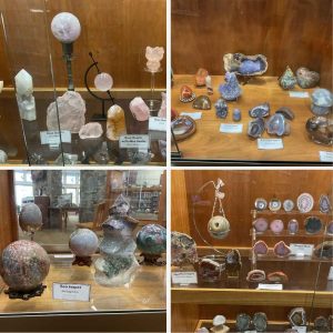 “Art from the Earth: A Collection,” is on loan from Jennifer Pagan, who has been fascinated by colorful rocks and minerals since she was a child. The exhibit includes a vast array of stones and crystals from the pink hues of rose quartz and the twinkling of rainbow amethyst to the swirls of agate and the marbles of jaspar.
